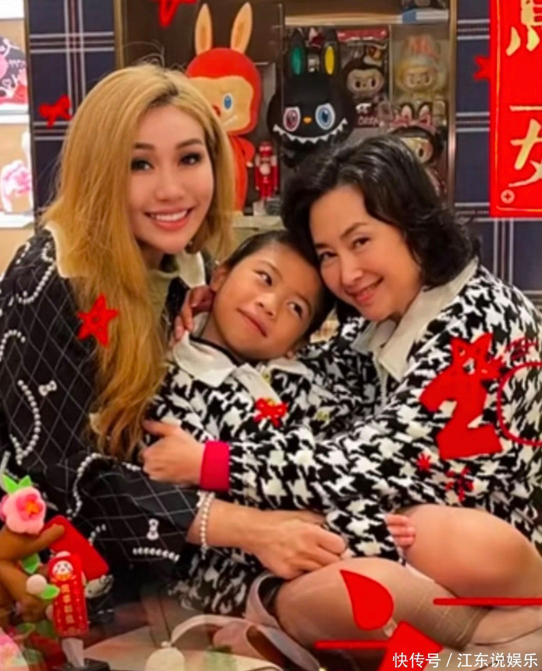 更意外的是,今年63岁的何超琼穿着千鸟格外套,一手抱着妹妹何超盈的女儿荷包蛋,一手举着百福图。她与荷包蛋穿亲子装,看上去两人很亲近,更似母女。荷包蛋成为了团宠,她也是一脸幸福。一事实上,她们本来就是一家人。